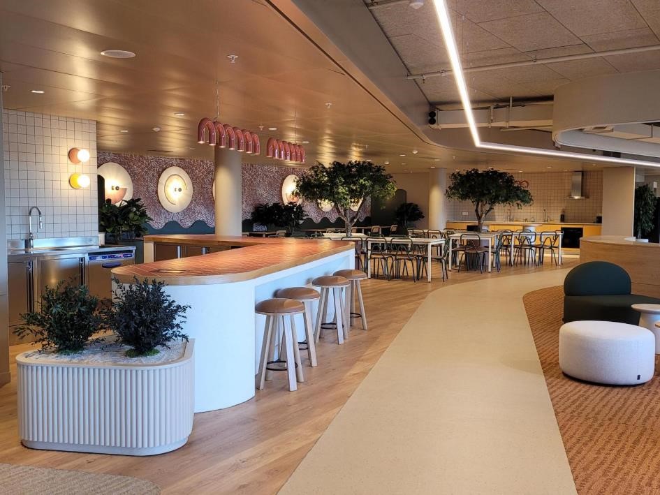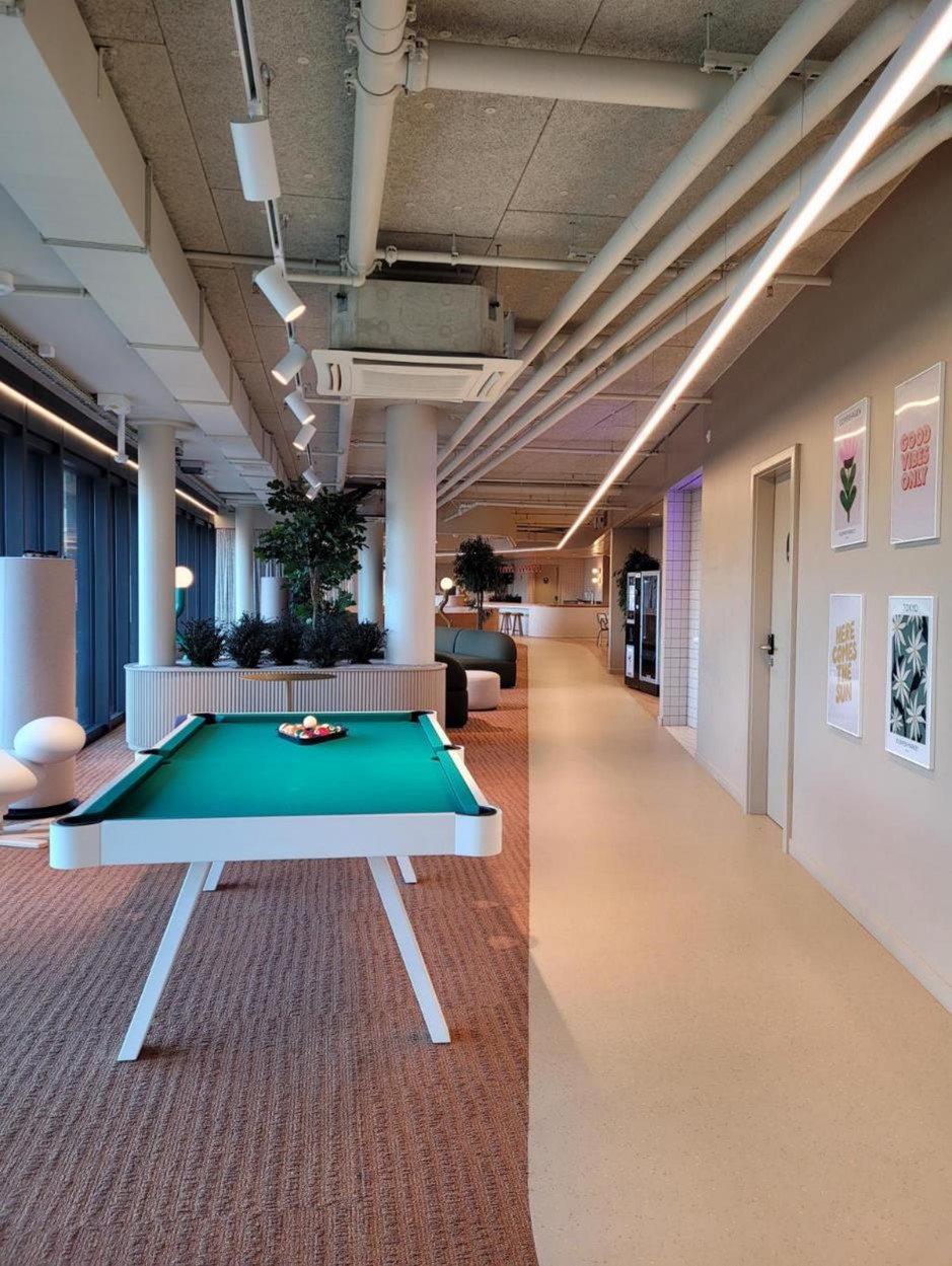 Aménagement intérieur d'un lobby pour étudiants dans le nouveau quartier de l'Etang à Genève.